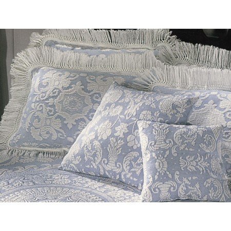 This classic historically inspired bedspread is 100 cotton yarn dyed jacquardColors Antique White White Linen Sage Blue Wedgewood BurgundyMade in Maine USA Care InstructionsMachine washdry This classic historically inspired pillow sham is 100 cotton yarn dyed jacquard Made